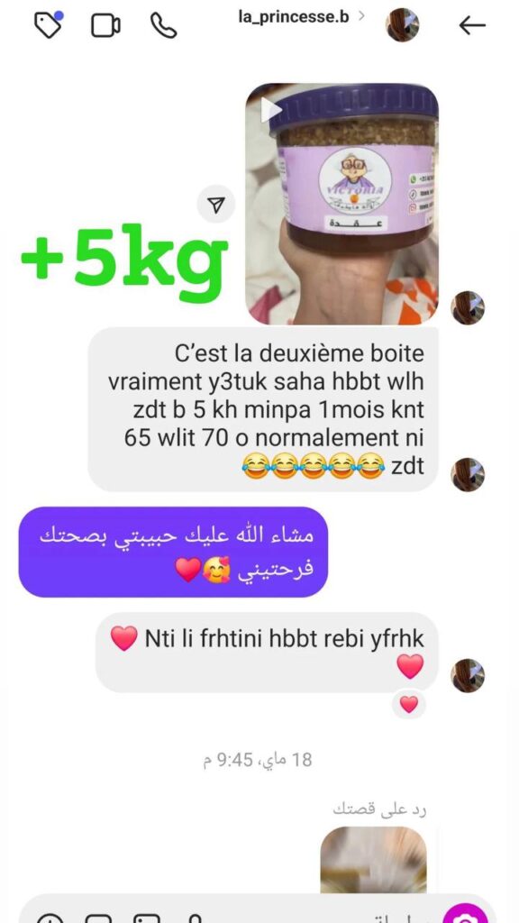 مرحبا بكم عند Victoria لالة فاطمة إشتري الآن مسمنات لالة فاطمة إذا الزبون يشتري منتجين أو أكثر يحصل على توصيل مجاني نتيجة إستعمال زبائننا الكرام تصريح طبي